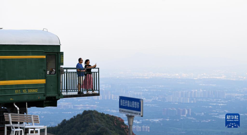 7月9日,游客在新密市伏羲山一處觀(guān)景臺游玩。