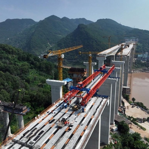 連日來(lái),重慶渝武高速公路復線(xiàn)控制性工程觀(guān)音峽嘉陵江特大橋引橋T梁架設全面展開(kāi),預計今年內全橋可實(shí)現貫通。觀(guān)音峽嘉陵江特大橋位于重慶市北碚區,大橋主跨235米。