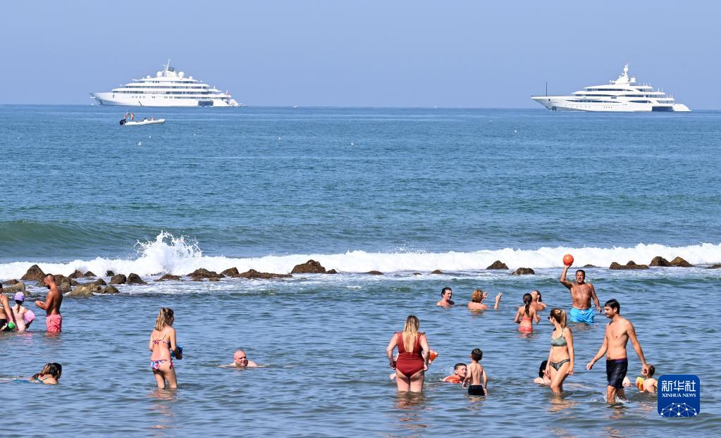 7月9日,人們在意大利羅馬奧斯蒂亞海邊消暑。