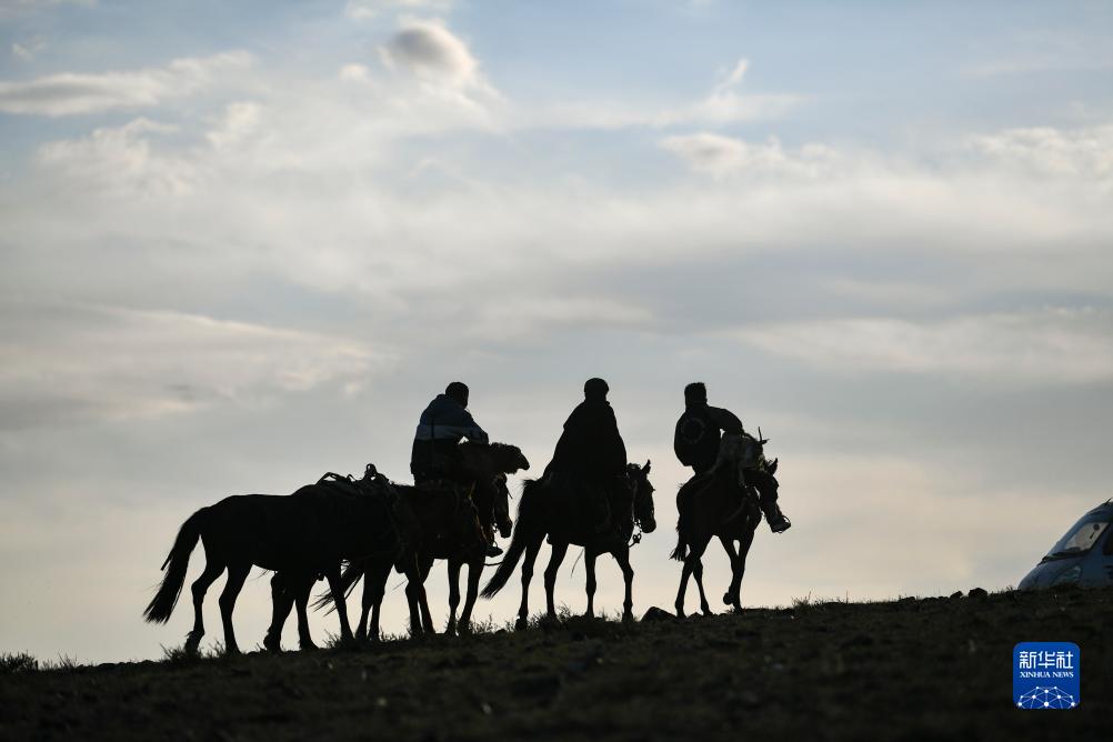 哈布得拉什么(中)、女婿阿依薩(左)、侄子寨桑騎馬繼續向深山前進(jìn)(7月3日攝)。