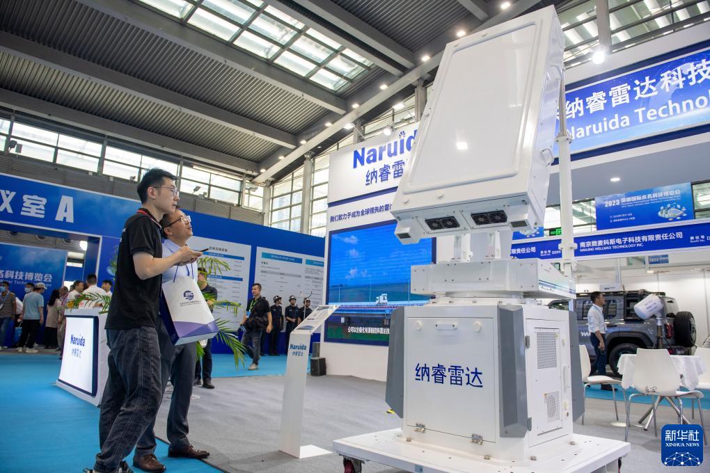 7月11日,參觀(guān)者在2023深圳國際水務(wù)科技博覽會(huì )了解一款測雨雷達。