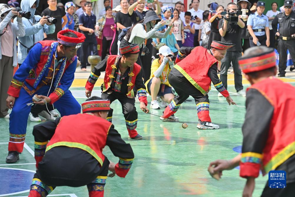 當日,廣西大化瑤族自治縣的各族群眾歡聚一堂,通過(guò)打陀螺、跳民族舞蹈、射弩等豐富多彩的民間文娛活動(dòng),歡慶一年一度的傳統節日——“祝著(zhù)節”。