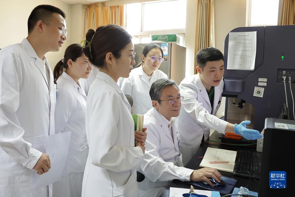 6月30日,黃曉軍(右二)在北京大學(xué)血液病研究所指導學(xué)生做實(shí)驗。