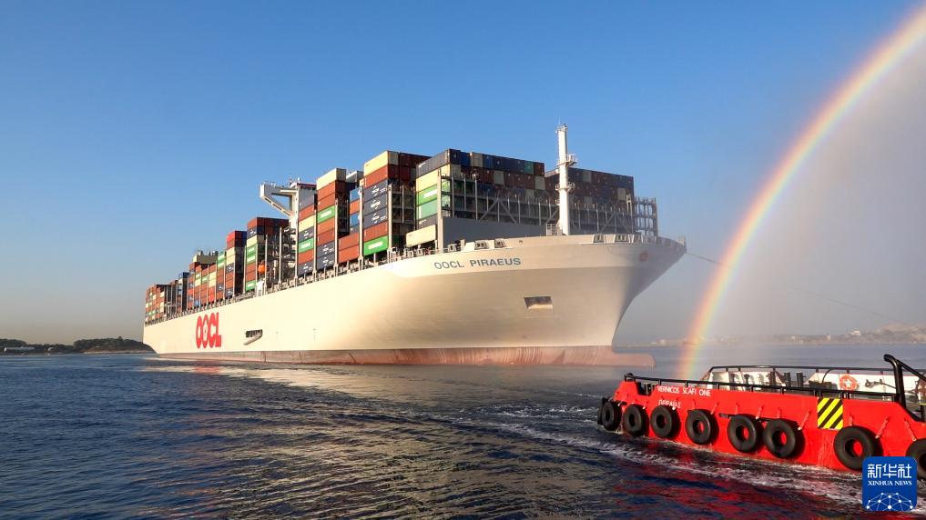 7月10日,“東方比雷埃夫斯”號大型集裝箱船抵達希臘最大港口比雷埃夫斯。