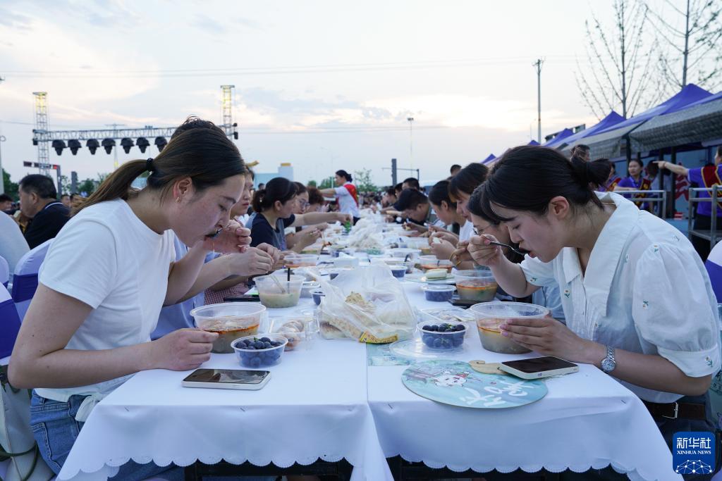 7月11日,在安徽省宿州市蕭縣水墨圣泉古鎮廣場(chǎng),人們品嘗羊湯。
