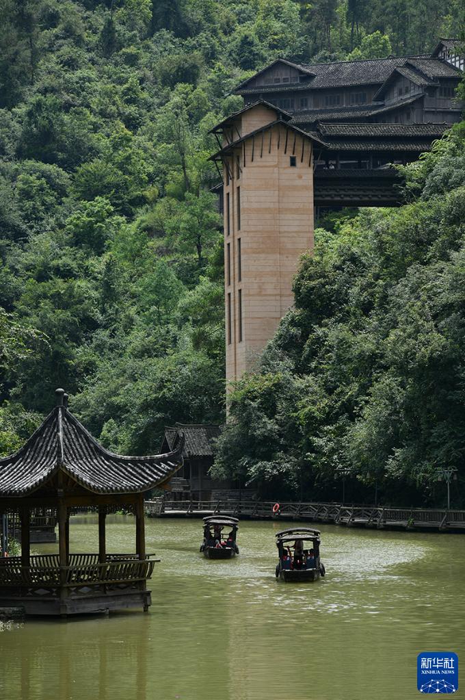 7月11日,游客在貴州省遵義市播州區烏江寨景區乘坐游船游覽。