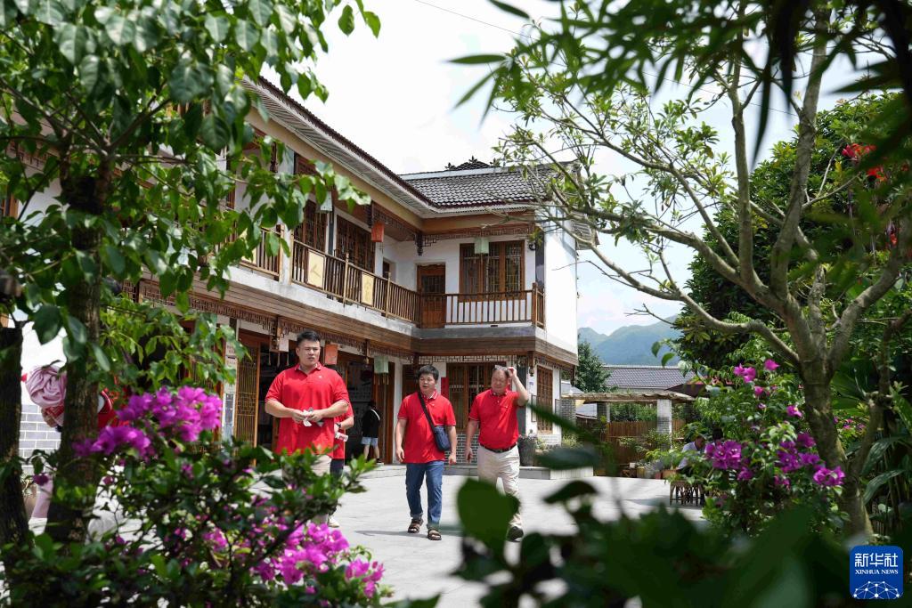 7月11日,游客在貴州省遵義市播州區楓香鎮花茂村游玩。
