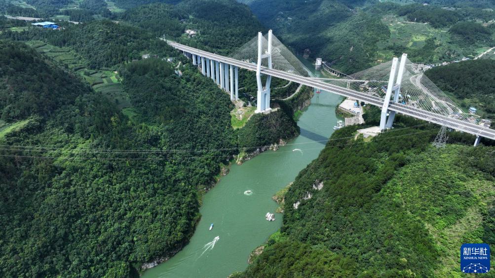 7月11日,游客在貴州省遵義市播州區楠木渡景區乘快艇游覽(無(wú)人機照片)。