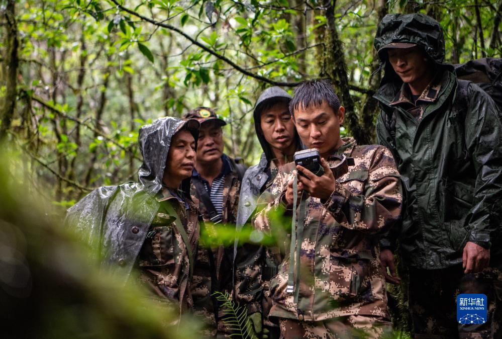 7月9日,巡護隊員在高黎貢山國家級自然保護區檢查紅外相機。新華社記者 江文耀 攝