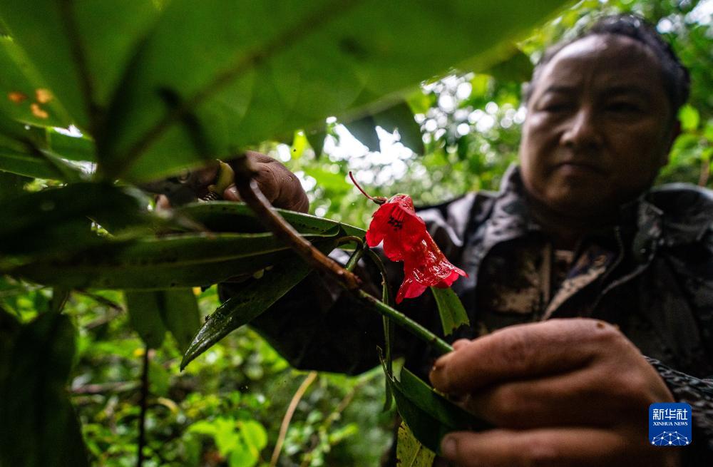 7月9日,何貴品在高黎貢山國家級自然保護區采集植物樣本。新華社記者 江文耀 攝