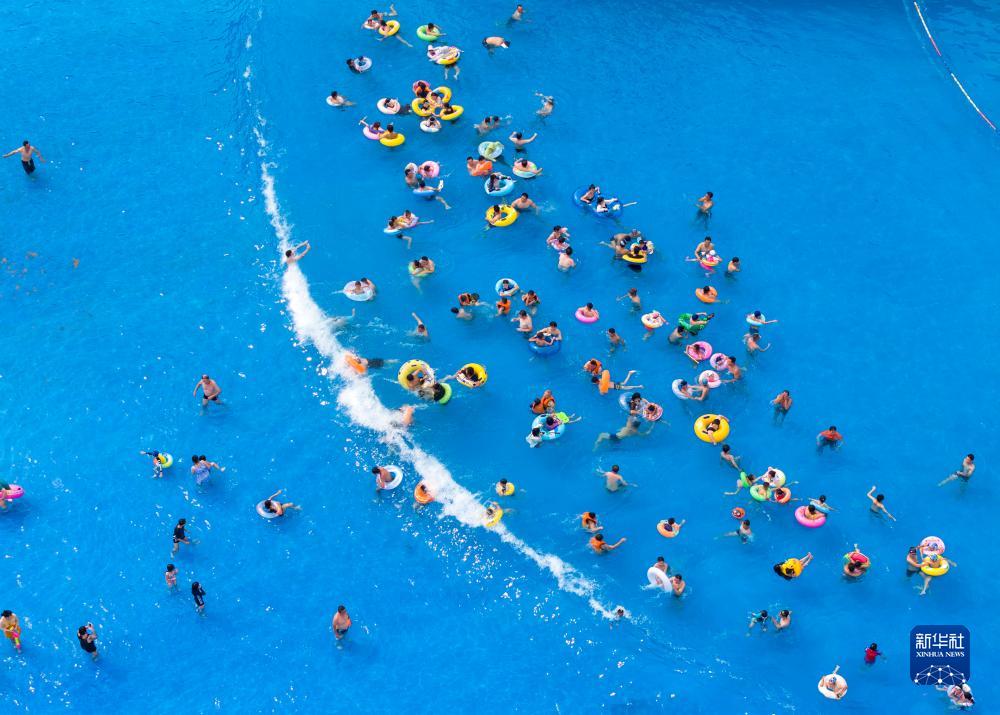 當日是入伏第一天,人們來(lái)到海邊、泳池和水上樂(lè )園戲水消暑,暢享清涼。