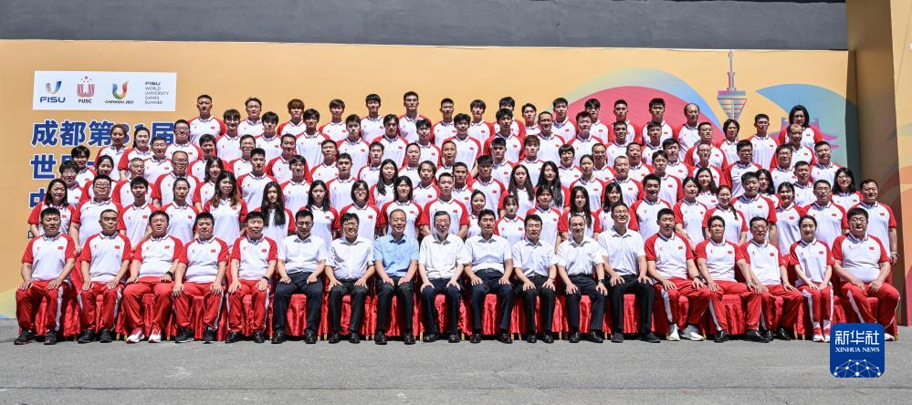 7月12日,中國大學(xué)生體育代表團部分成員合影。
