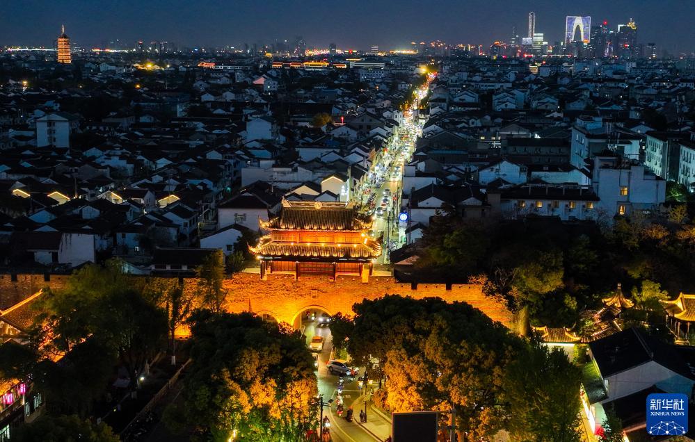 蘇州閶門(mén)夜景(無(wú)人機照片,4月10日攝)。