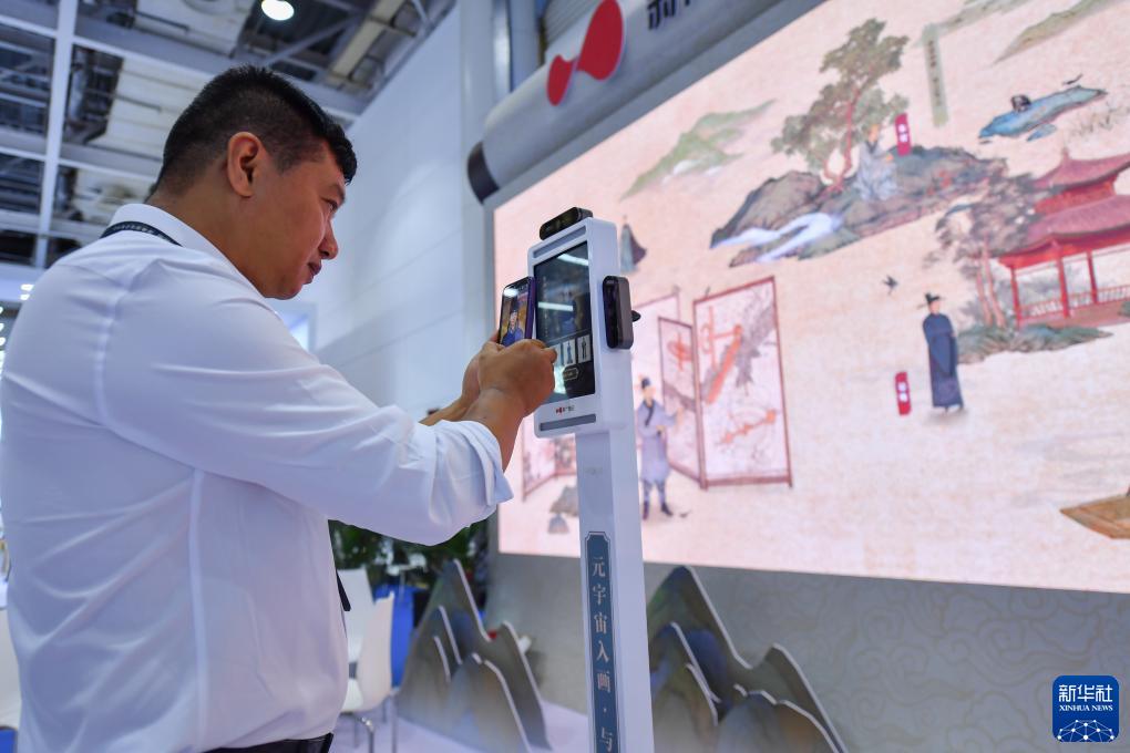7月12日,參觀(guān)者在中國新媒體技術(shù)展上體驗文化數字化操作系統。