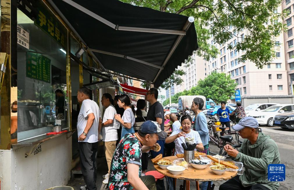 7月11日,人們在天津西北角西關(guān)北街的一家早點(diǎn)鋪吃早點(diǎn)。