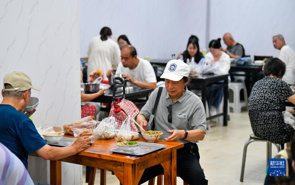 7月10日,人們在天津西北角的一家早點(diǎn)鋪吃早點(diǎn)。