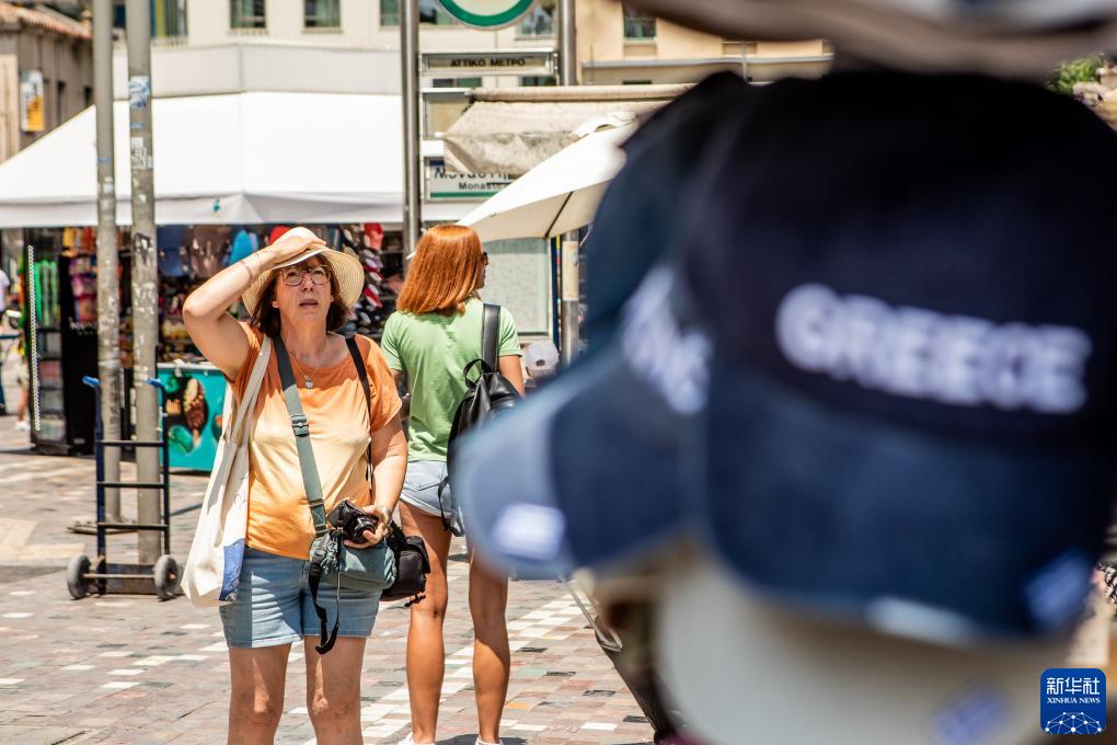 7月12日,游客頂著(zhù)烈日游覽希臘雅典。