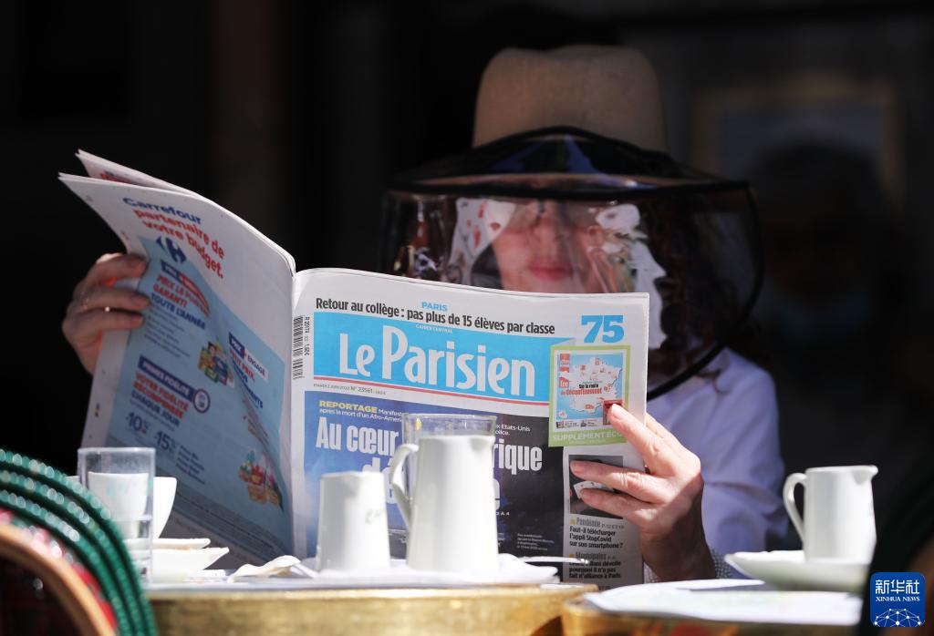 這是一名女子在法國巴黎塞納河邊的咖啡館看《巴黎人報》(6月2日攝)。