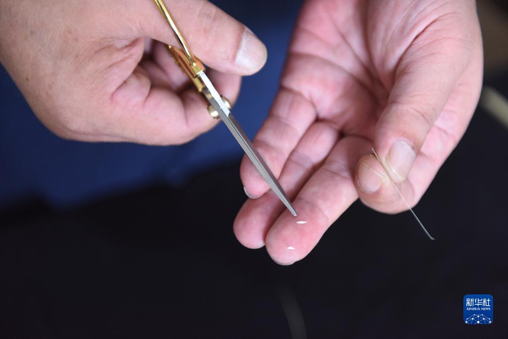 7月12日,吳永龍將細小的“零件”從麥稈做成的條片上剪下。新華社記者 黃曉勇 攝