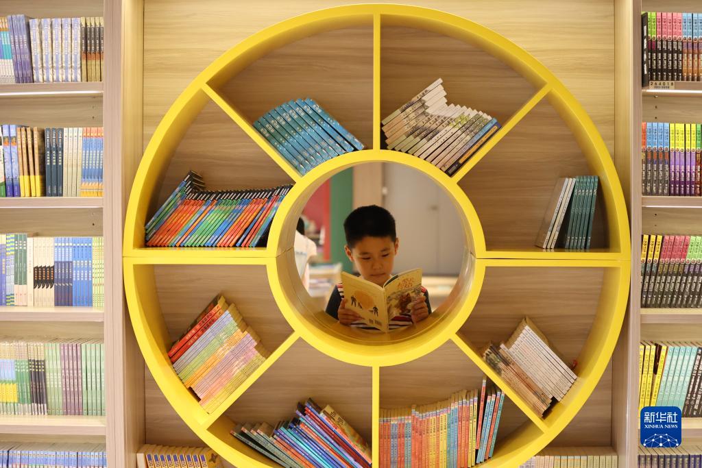 7月13日,河南省開(kāi)封市一名小朋友在書(shū)店讀書(shū)。