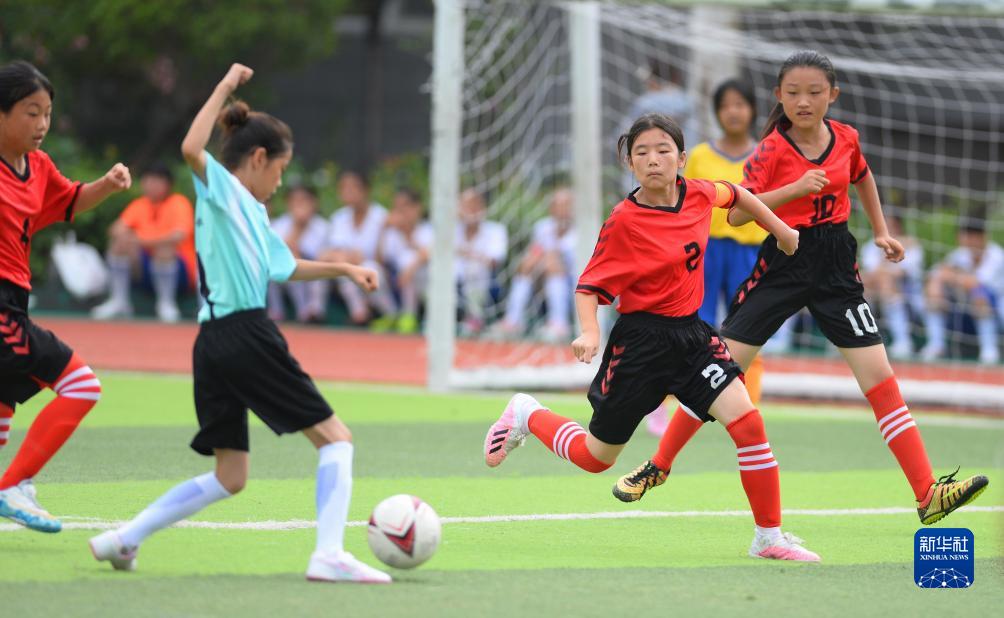 7月13日,在山東省滕州市實(shí)驗小學(xué)文化路校區,參加滕州市第七屆校園足球聯(lián)賽的孩子們在球場(chǎng)上拼搶。