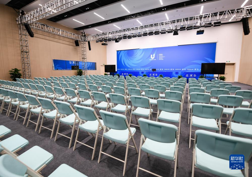 這是7月13日拍攝的成都大運會(huì )主媒體中心新聞發(fā)布廳。