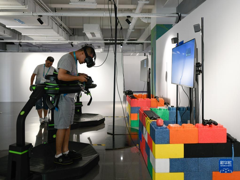 7月14日,媒體工作人員在成都大運會(huì )主媒體中心休閑娛樂(lè )區內體驗VR游戲。