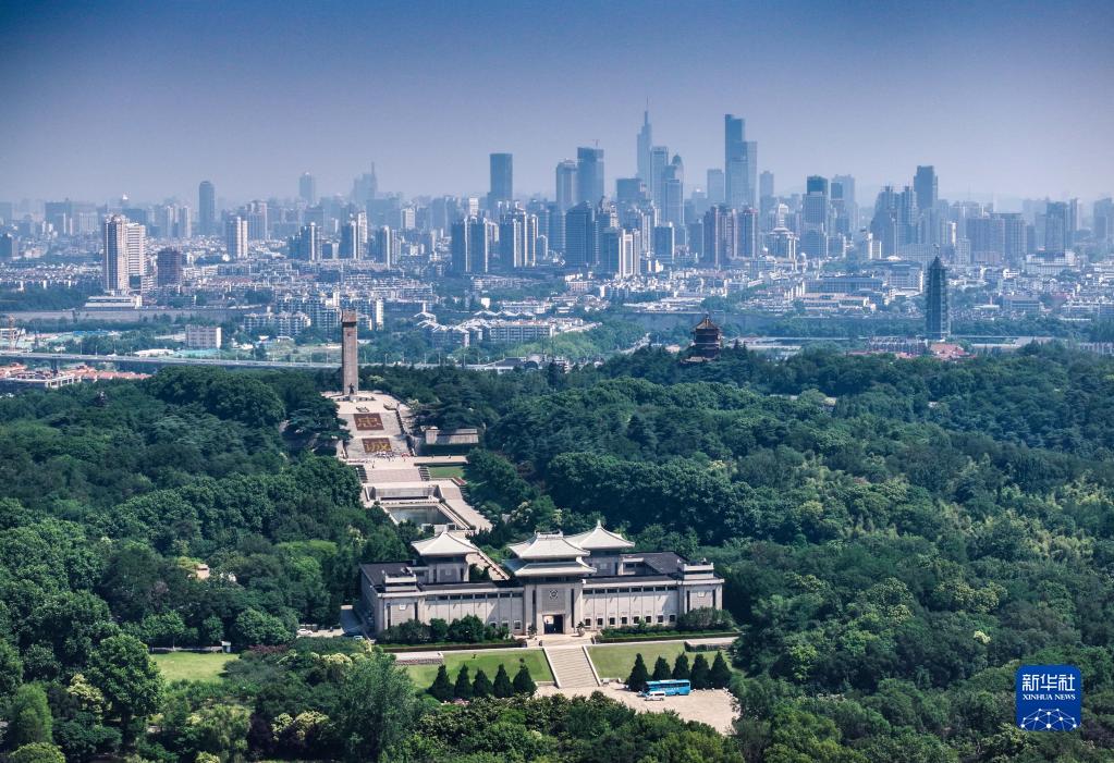 南京雨花臺烈士陵園與城市景色(無(wú)人機照片,6月9日攝)。
