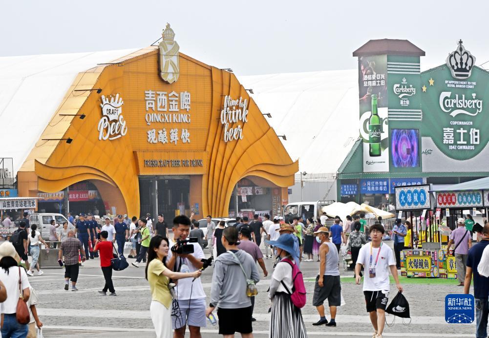 7月14日,游客進(jìn)入金沙灘啤酒城游玩。