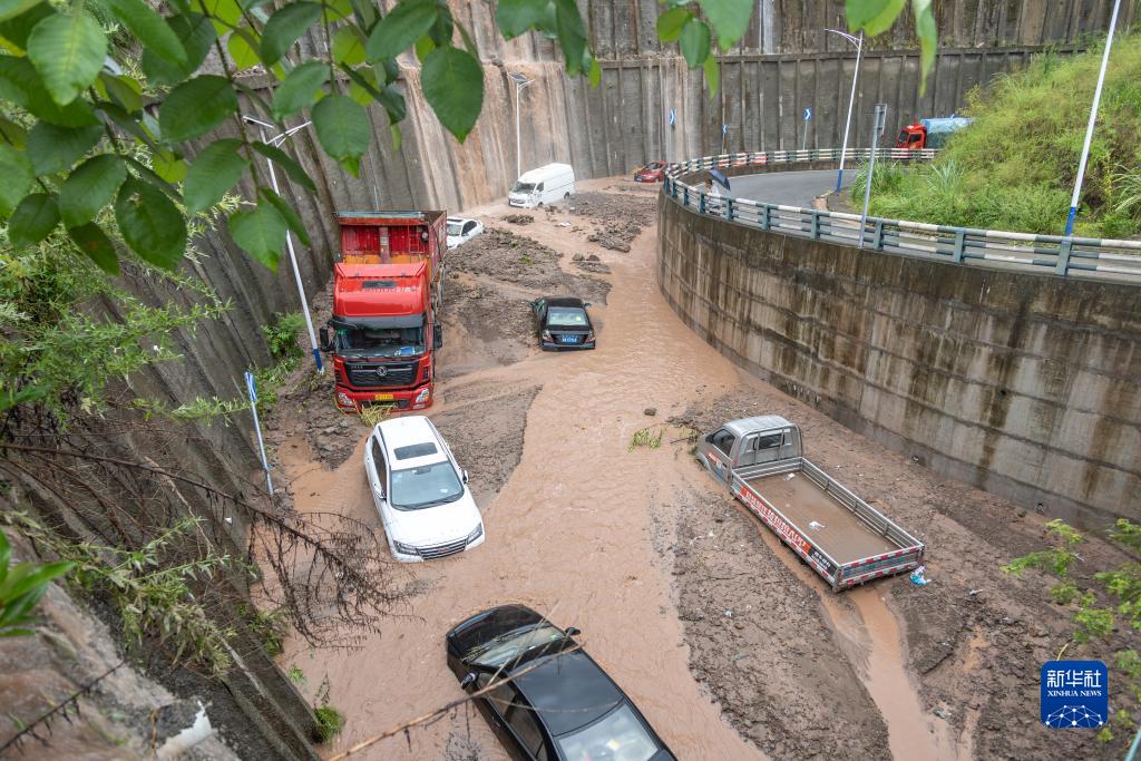 7月14日,在重慶市萬(wàn)州區江南新區,??吭诼愤叺牟糠周?chē)輛陷在淤泥里。