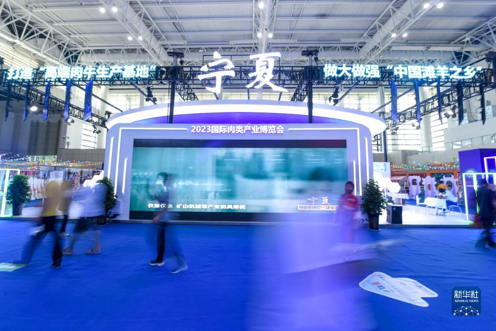 這是7月14日拍攝的2023國際肉類(lèi)產(chǎn)業(yè)博覽會(huì )現場(chǎng)。