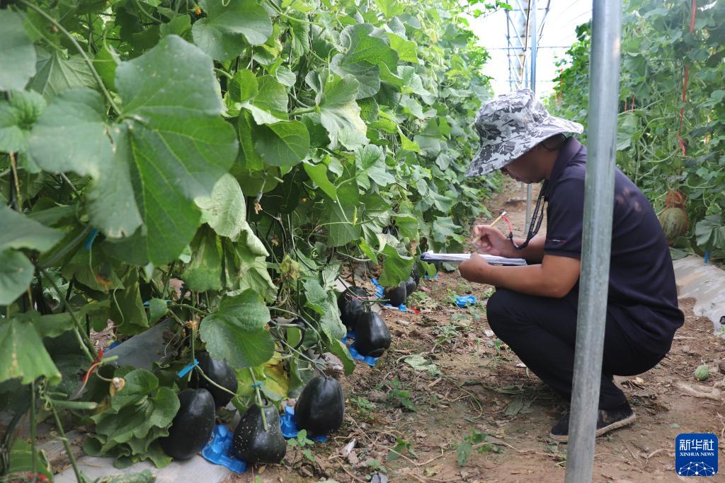 7月14日,科研人員在進(jìn)行甜瓜資源田間數據調查。