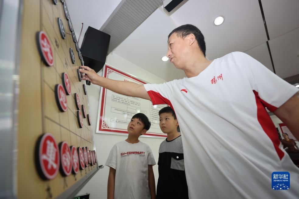 7月14日,孩子們在江蘇省揚州市江都區仙女鎮南吳社區假日學(xué)堂學(xué)習象棋。