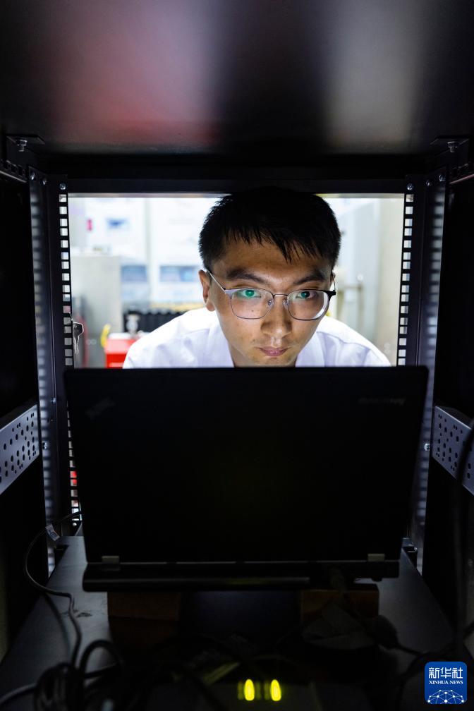 7月3日,在中國錦屏地下實(shí)驗室,實(shí)驗組成員景明坤在檢查實(shí)驗數據。新華社記者 沈伯韓 攝