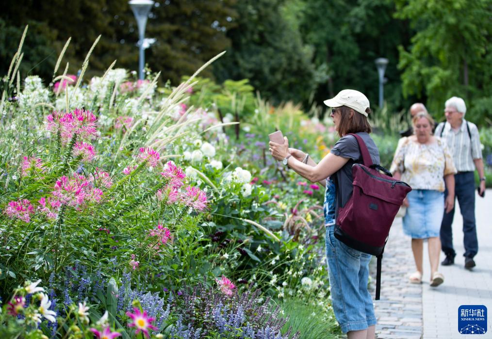 7月14日,游客在德國曼海姆的路易森公園參觀(guān)聯(lián)邦園藝展。