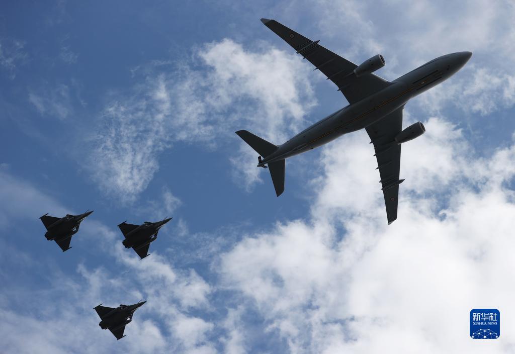 7月14日,法國空軍飛機參加在巴黎舉行的國慶閱兵式。新華社記者 高靜 攝