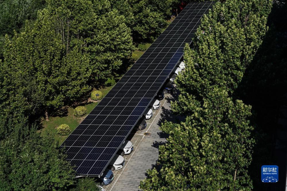 7月14日拍攝的停車(chē)區頂棚的光伏設備。