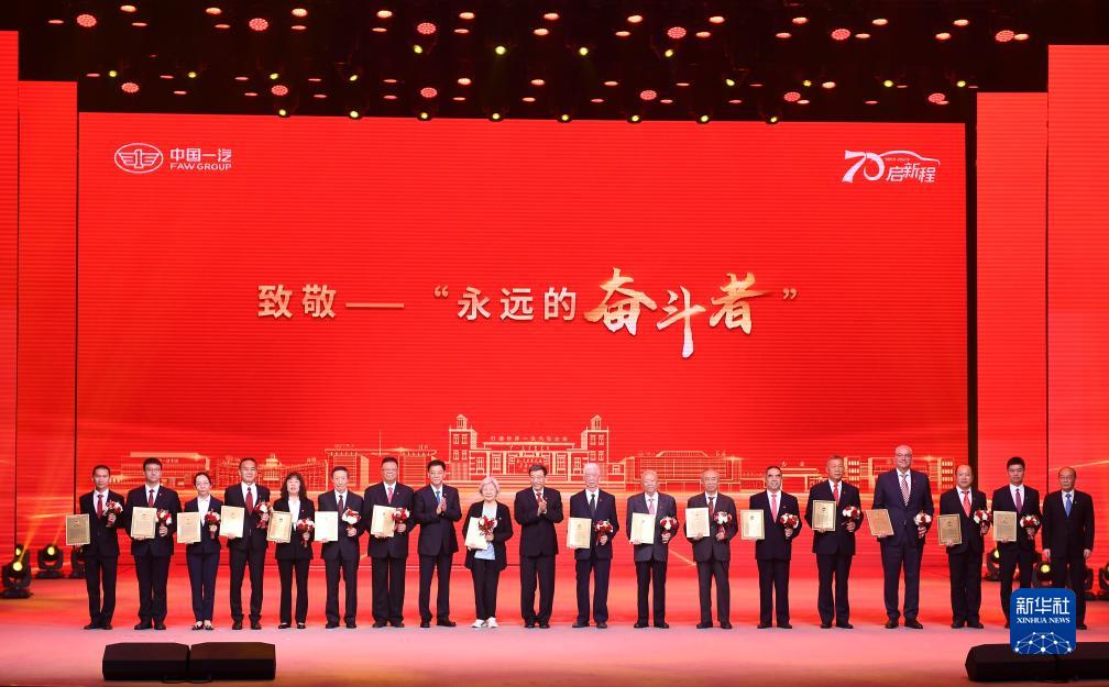 7月15日,中國一汽成立70周年慶祝大會(huì )頒發(fā)“永遠的奮斗者”致敬信和中國一汽成立70周年紀念章。