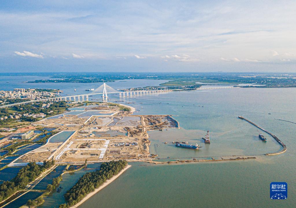 7月14日拍攝的建設中的文昌鋪前中心漁港項目(無(wú)人機照片)。
