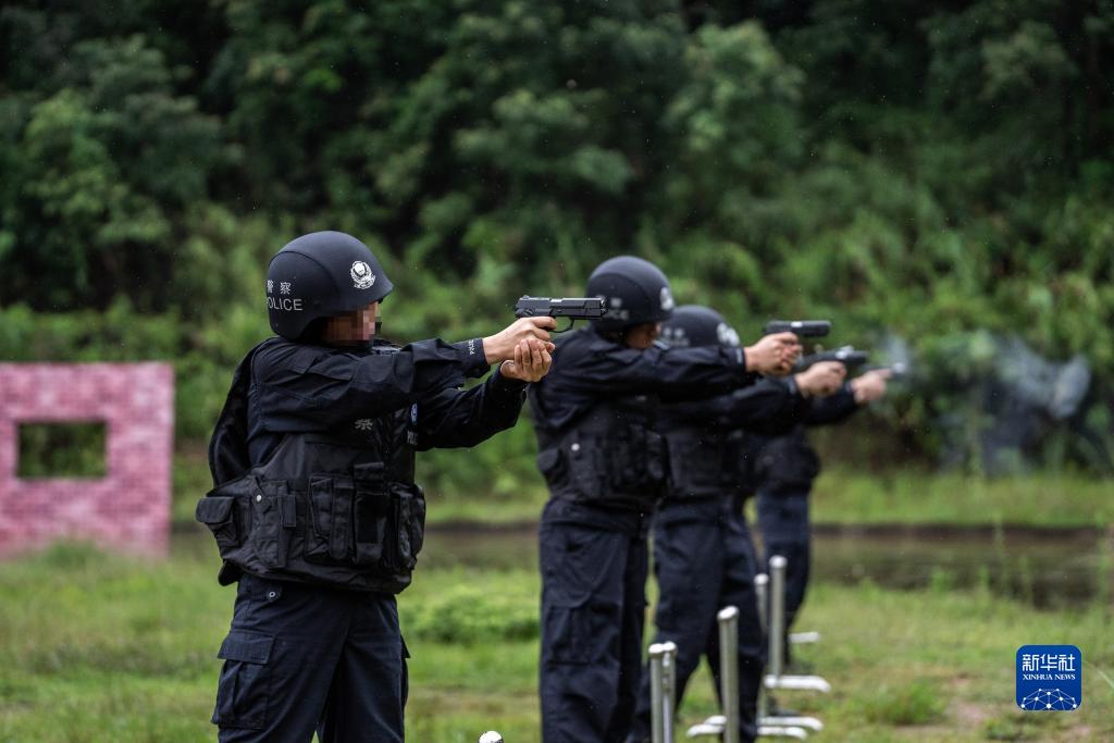 7月13日,尹銘燕(左一)和戰友在進(jìn)行射擊訓練。