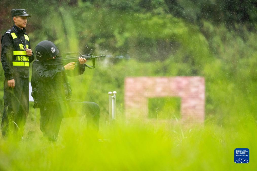 7月13日,尹銘燕(右)在進(jìn)行射擊訓練。