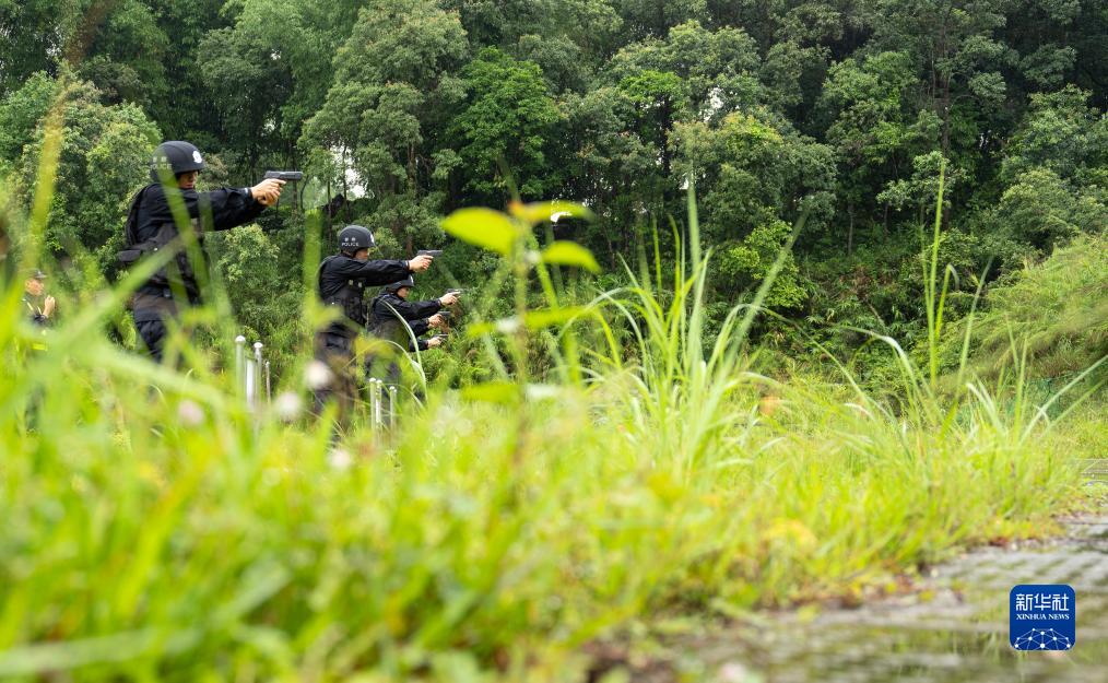 7月13日,尹銘燕(前)和戰友在進(jìn)行射擊訓練。