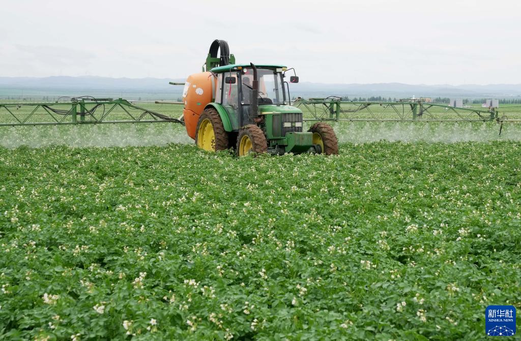 7月15日,農機手駕駛農機在張家口市塞北管理區的田間進(jìn)行滅蟲(chóng)作業(yè)。