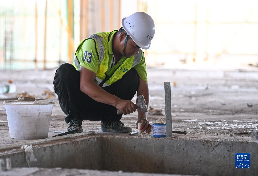 7月15日,工人在海南文昌國際航天城遙感衛星項目施工。