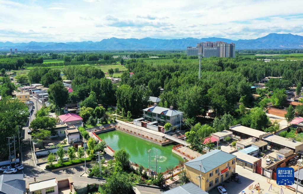河北省涿州市東仙坡鎮西仙坡村由垃圾坑塘經(jīng)過(guò)治理建成的游園(7月16日攝,無(wú)人機照片)。