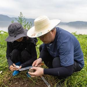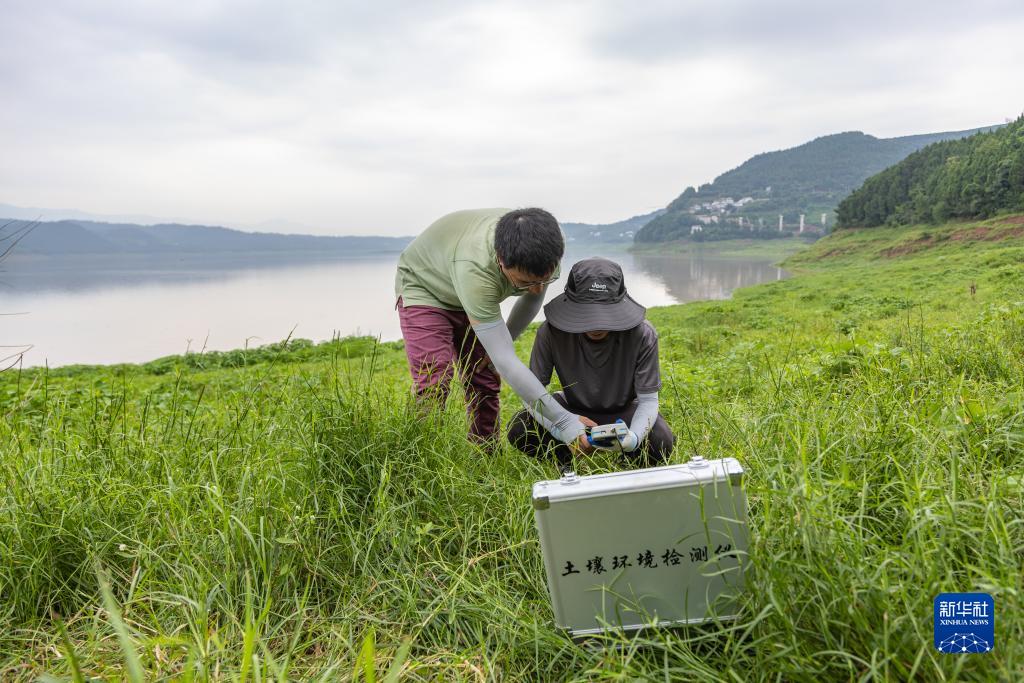 7月6日,在重慶市忠縣,中國科學(xué)院成都山地所科研人員在三峽水庫消落帶現場(chǎng)測定土壤溫濕度。