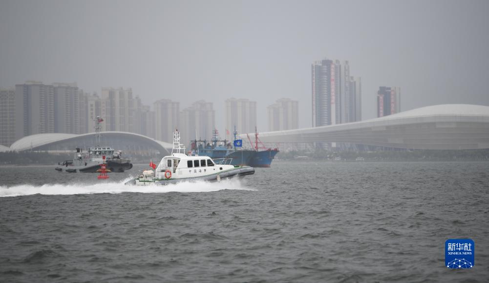 7月17日,在廣東湛江金沙灣水域,海事船只在執勤巡邏。