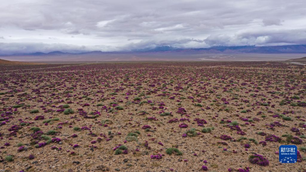 7月11日在新疆阿爾金山國家級自然保護區拍攝的刺葉柄棘豆(無(wú)人機照片)。