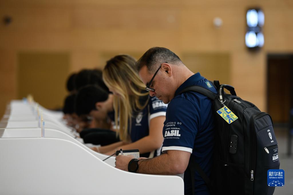 7月17日,在成都天府國際機場(chǎng),首批抵蓉的巴西代表團成員填寫(xiě)入境卡。