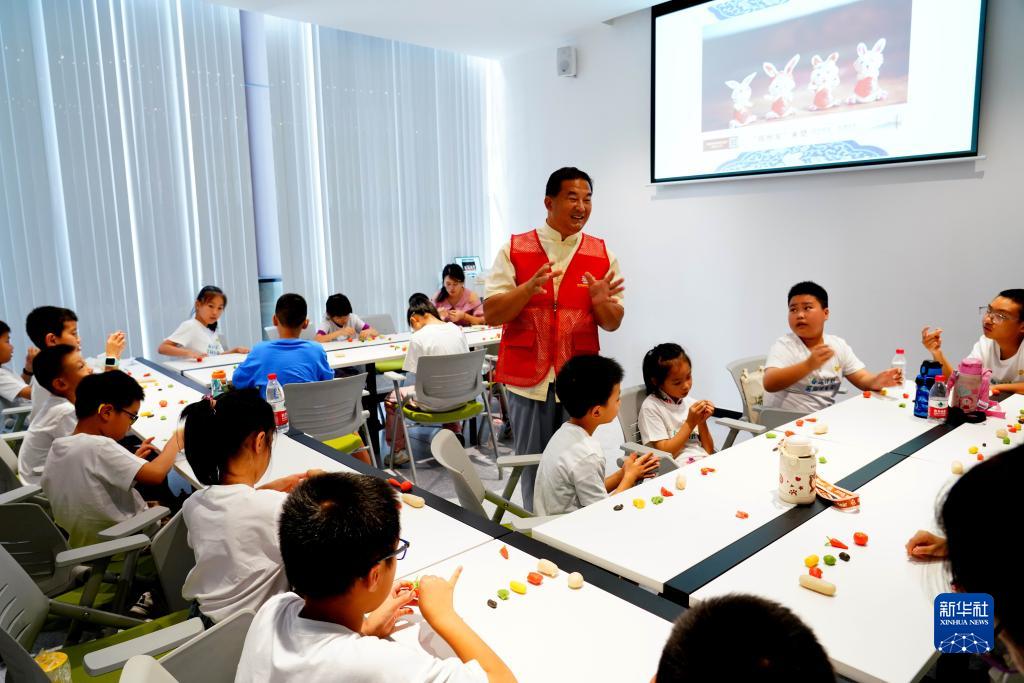 7月17日,浙江省瑞安市2023年“春泥計劃”暑期快樂(lè )營(yíng)在瑞安市新時(shí)代文明實(shí)踐中心舉行啟動(dòng)儀式,學(xué)生在“精彩非遺”傳承營(yíng)學(xué)習米塑技藝。